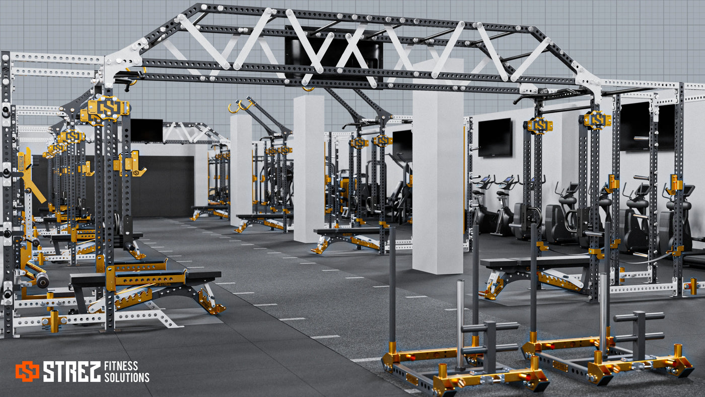 Modułowy system wyposażenia Strez pozwala na dowolną konfigurację i niestandardowe połączenia sprzętu treningowego.